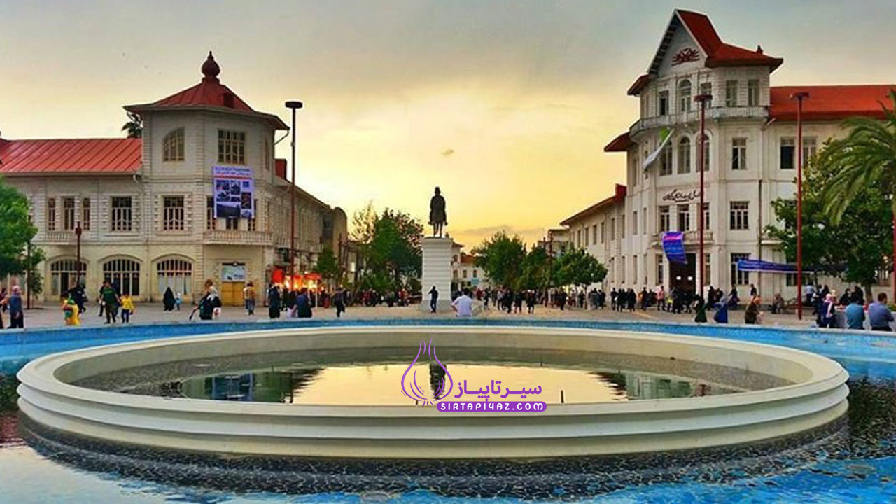 قلب تپنده شهر رشت با ساختمانهای تاریخی به سبک روسی. ساعت معروف شهرداری که هر ساعت آهنگ خاصی مینوازد، از نمادهای این شهر است.